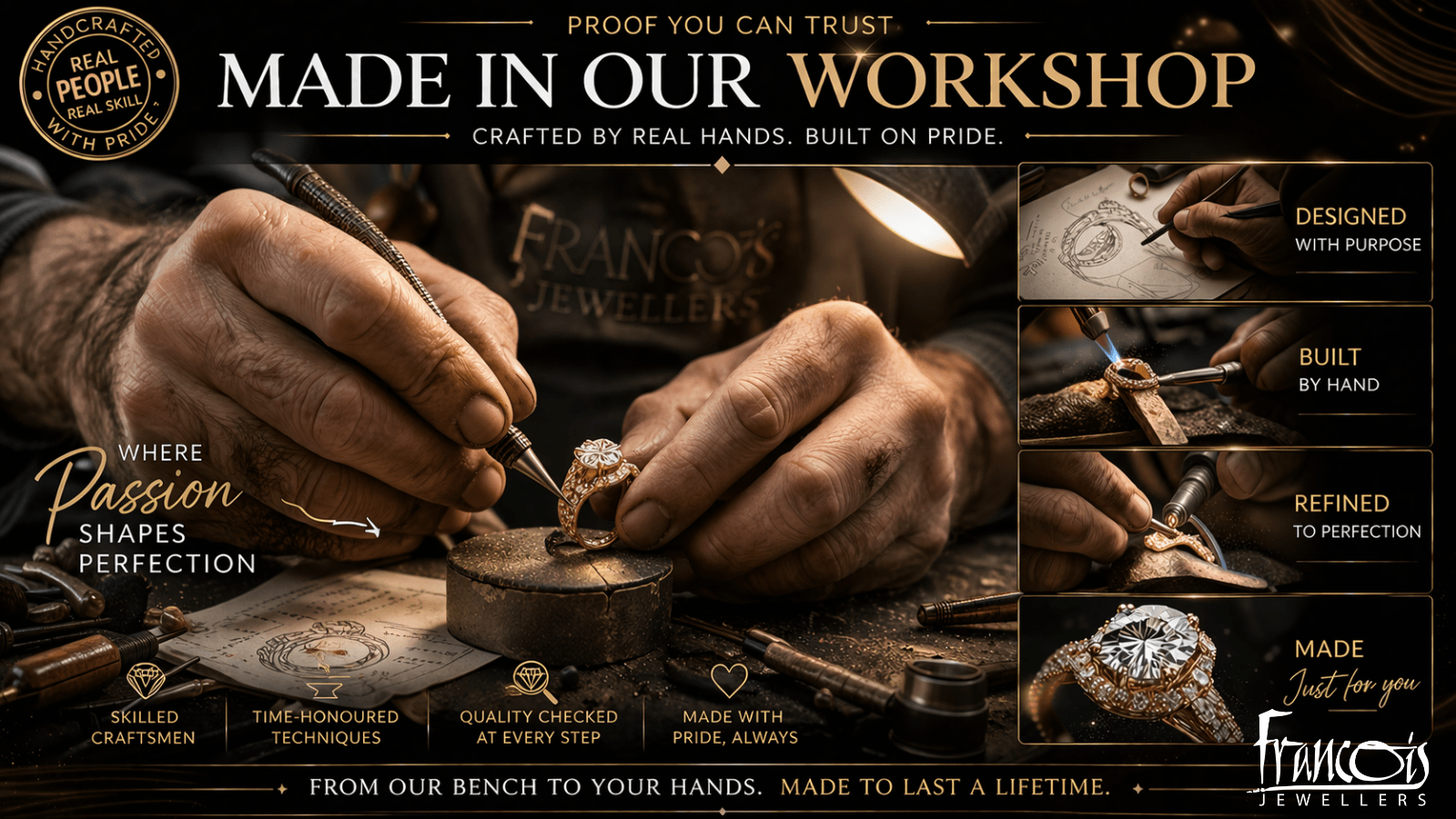 The price of each item varies as it will be manufactured to your specifications and to suit your budget. We manufacture fine Jewellery in all types and colors of precious metals or combinations thereof. We use any type and size of stone to suit your unique requirements.